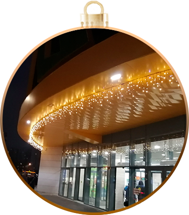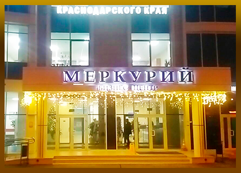 У Бизнес-центра "Меркурий" в Краснодаре яркий архитектурный облик, который мы подчеркнули с помощью новогодней иллюминации. Бахрома теплого света акцентирует внимание на европейский стиль бизнес-центра и напоминает работникам, посетителям и прохожим о приближении чудесного праздника. Для новогоднего украшения использовалась бахрома с самым высоким классом защиты IP65 с дополнительной герметизацией колпачка. Включение бахромы происходит дистанционно, с помощью специального пульта.