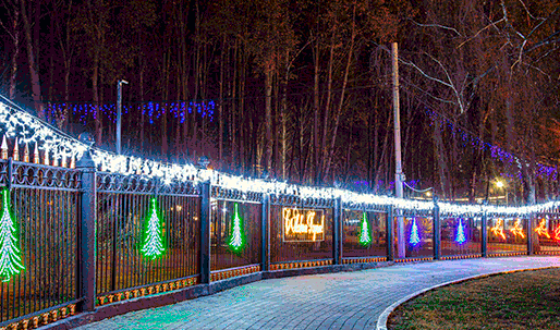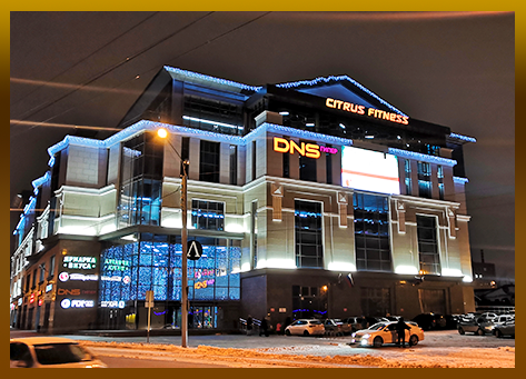 Каждый вечер торговый комплекс «Любимый» в Оренбурге зажигает свои огни и напоминает посетителям и прохожим о приближающемся празднике. Для новогоднего украшения использовалась бахрома холодного света с самым высоким классом защиты IP65 с дополнительной герметизацией колпачка. Включение бахромы происходит дистанционно, с помощью специального пульта. Монтаж объекта был выполнен в течении 3х дней с применением спецтехники.