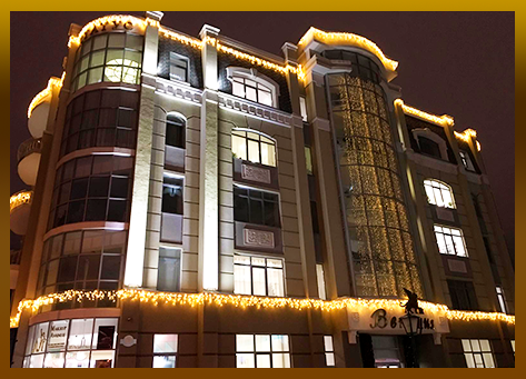 Бизнес-центр "Венеция" располагается в самом центре города Оренбург. Для украшения мы использовали бахрому теплого света, которая подчеркнула утонченный и выдержанный стиль архитектуры этого здания. Бахрома использовалась с самым высоким классом защиты IP65 с дополнительной герметизацией колпачка. Включение бахромы происходит дистанционно, с помощью специального пульта. Монтаж объекта был выполнен в течении 3 дней с применением спецтехники.